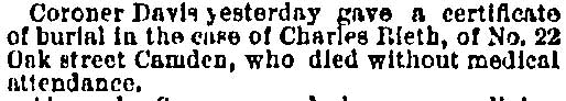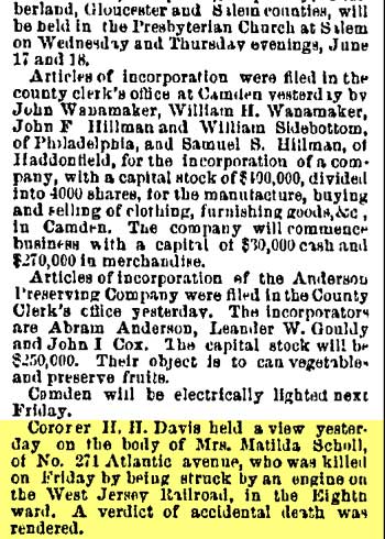 Frederick Moebius Mrs. G. Gamoski - Frederick Maier - William Long Franklin Hall at South 7th Street & Ferry Avenue Pine Street - Haddon Avenue - North 5th Street - Cooper Street - Pearl Street - Morton Street |