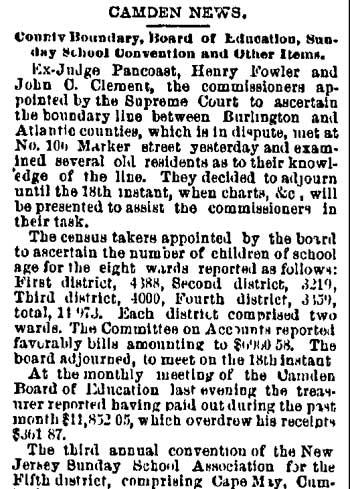DR. HENRY H. DAVIS was born at Crosswicks, N. J., August 16, 1848. He became a student of medicine in the office of Dr. Alexander Mecray in 1867; and enrolled at the Jefferson Medical College the fall of the same year, from which he graduated in March of 1869. He completed a course in pharmacy at the Philadelphia College of Pharmacy and Science, graduating at the same time, and began the practice of medicine in Camden. In 1874 he opened a drug store, which he conducted in connection with his profession through at least 1886. In 1881 he joined the Camden County and City Medical Societies, and also the State Medical Society. He ran unsuccessfully for Mayor in 1883, losing the election to Claudius W. Bradshaw. Dr. Davis made his home and conducted his medical practice and pharmacy at 299 Kaighn Avenue, the northwest corner of Third Street and Kaighn Avenue through most of the 1880s. When the 1890-1891 Camden City Directory was published he had moved his residence and practice to the southeast corner. He later served as a physician at the Camden City Dispensary, one of the city's early hospitals. When the census was taken in 1910 he and his wife resided in the apartments at 232 North 2nd Street, at the southeast corner of 2nd and Penn Streets. He later lived, with his wife, the former Harriet Blizzard, at 417 Cooper Street in Camden. In these times Dr. Davis served as a school board member, county coroner, Camden's first medical inspector, and first chief medical inspector. He served for many years on Camden's Board of Health, and was president during the years when the Camden Municipal Hospital for Contagious Diseases was planned and built. He was also the Chief of the Medical Department of Camden's public schools, and was the first person to serve as a School Medical Inspector in the State of New Jersey. Plans for Camden Municipal Hospital were prepared in 1910. In 1912 construction was actually started under the direction of a building committee, composed of Raymond L. Warren, John A. Mather, Jr., and William H. Kensinger, M.D. The members of the City Board of Health, at this time, were Henry H. Davis, M.D., president; Marcus K. Mines, M.D.; E. Winner Collins; Reuben L. Gaskill; S. G. Bushey, M.D.; Melbourne F. Middleton, M.D.; and William I. Kelchner, M.D. Bids for equipping the hospital were let in 1914, and Dr. David Rhone was active in selecting the medical supplies and equipment. With the appointment of four assistant medical inspectors, in addition to Chief Medical Inspector Davis, in September 1911, the medical department made significant strides in preserving the health and well-being of the students. In the first full month of employment, the five medical inspectors examined over 2,700 students. The department was also able to keep statistics on the various childhood diseases prevalent in the schools, and provide vaccinations in greater numbers. One year later, the board appointed Dr. Roscoe L. Moore, graduate of Camden High School, class of 1903, as an assistant medical inspector for the colored schools, with a salary of $240 per year. By the time school opened in September 1911, the district had immigrants from Germany, Italy, England, Prussia, Poland, Romania, and Holland in the classrooms. The medical department, in one month alone, found 81 children with malnutrition among them, and found 16 native-born Americans having defective vision, and 84 with periodontal problems. The teachers' club informed the board of the wonderful work of the medical department, and the teachers agreed that the examinations alone reduced student absences and alerted teachers to medical problems. The medical department had a great deal of success meeting with parents who were more or less opposed to vaccinations, but in cases in which parents refused to have their children vaccinated, the board rejected their admittance. The department also had the board pass a rule that teachers found to have a communicable disease during the school year, did not lose any part of their salary for time lost, up to 30 days. In February 1913, scarlet fever was in epidemic proportions in the school district, and in March, it was measles. Dr. Davis felt that epidemics resulted from the fact that there were too many families where diseases exist, but who have no physicians to report the diseases. If parents gave immediate attention to every case of a simple sore throat, they could prevent many sever and fatal cases of diphtheria and scarlet fever. He warned parents that they should be circumspect about the popular movie houses, which might be largely responsible for the spread of the contagious and infectious diseases. Dr. Davis stated that providing classrooms with screens that allowed fresh air to circulate throughout the room was a health benefit to the students. To prove his point, the board allowed him to open an all-girls open-air class in the Bergen School in September 1913. The teacher held the open-air class outside, regardless of temperature, weather permitting. Parents had to sign a consent form and they used Rochester, or portable desks, for the students. The board bought suitable clothing for the students, provided milk twice a day, and lunch, with a changing menu, on a daily basis. The meal consisted of foods like cereals, cocoa, baked potatoes, and Hornlick's malted milk (that the company kindly donated free.) Attendance in the open-air class showed much better turnout than other classes in the school. He concluded from this small experiment, that the district should create more open-air classrooms, and added that other school districts around the country were establishing open-air classrooms. Nevertheless, because of the very small enrollment in the open-air class at the Bergen School, the committee on teachers discontinued the class as of February 1, 1925. Medical suites were more or less established when the board consented to the purchase of medical cabinets, and examination screens for the schools. M