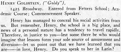 DR. HENRY Z. GOLDSTEIN was born in Camden NJ on October 11, 1902, the youngest of four children of Solomon Joseph and Rose Zuckerman Goldstein, who lived on Broadway south of Kaighn Avenue. The Goldstein family had lived in Baltimore, and had come to Camden from Pennsylvania by 1898. Of the other Goldstein children, both Hyman Goldstein and Leopold Goldstein would also become doctors. Daughter Sadie who would marry Dr. David Cooper, who practiced dentistry in Camden and South Jersey for many years. Henry Goldstein attended the Fetters School at 1020 S. 3rd Street, and was a 1920 graduate of Camden High School, where he finished first in his class. In his high school yearbook were the following lines: "You'll