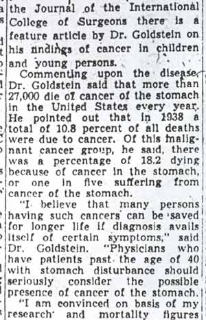 DOCTOR Charging preference is shown to Cooper Hospital staff physicians at the county general hospital in Lake land, Dr. Hyman L Goldstein yester day called upon Dr. Warren E. Pinner, freeholder who, heads the general hospital committee, to take action. Dr, Goldstein criticized Drs. Frank O. Stem and Paul M. Mecray in a communication to Dr. Pinner, which follows: "May I suggest to you and your committee that it would accrue to the benefit of the county institutions and the services if you arrange to appoint (only part time, of course) a physician-in-charge, or medical director, of Lakeland General Hospital, at $1000 or $1200 per annum, and another physician-in-charge, or medical director for the mental institution at $1200. Favors Medical Director "While it is true that half the salary of the medical director of the mental hospital is returned to the county by the state, the small added outlay for a medical director of the General Hospital would give you much better service, and would make it easier and more satisfactory to work out your medical problems for this hospital with your hospital committee (of the Freeholders). "I also call your attention to the fact that Dr. Paul M. Mecray, of Moorestown, Burlington County, is 67 years of age, and not a resident of Camden. In most of the approved and accredited active general hospitals, chief surgeons are automatically retired when they reach the age of about 62. "Thus last year Professor P. Brooke Bland, of Jefferson Hospital, was automatically retired as active surgeon upon reaching the age of 62. Cooper Favored He Says '''It also appears to be unfair to the Camden physicians and surgeons and there are about 300 qualified physicians listed in the American Medical directory for Camden city and county- that Drs. Stem and Mecray Should complete an entire staff of 20 or 22 for Lakeland General Hospital- a county-owned public charity hospital- limited, with one or two exceptions, to the members of the Cooper Hospital staff. "It is also unfair for Dr. Stem to permit several of these physicians to operate on pay patients- that is, patients who pay fees for operations, at the county-owned public charity hospital. Why not permit all qualified physicians and surgeons of Camden city and county to treat pay patients at Lakeland General Hospital if such accommodations are afforded and given patients of the above limited "preferred" Stem-Mecray list? Lakeland General is not a private corporation, and should not be permitted to be thus controlled. |