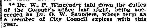 also served as County Coroner, and was on the