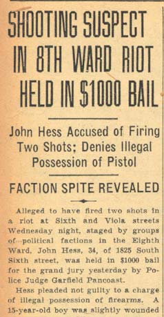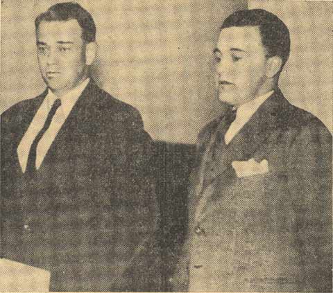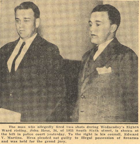 John Hess, left, was held for the grand jury on charges of illegal possession of firearms as a result of the shooting incident at Tansky's Cafe. On tight is his attorney. Edward V. Martino. Click on Image to Enlarge.