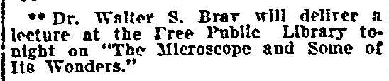 Funeral services will be held at the Bray residence Tuesday morning at 11 o'clock. Rev. James Morrison, pastor of the North Baptist church, will officiate.