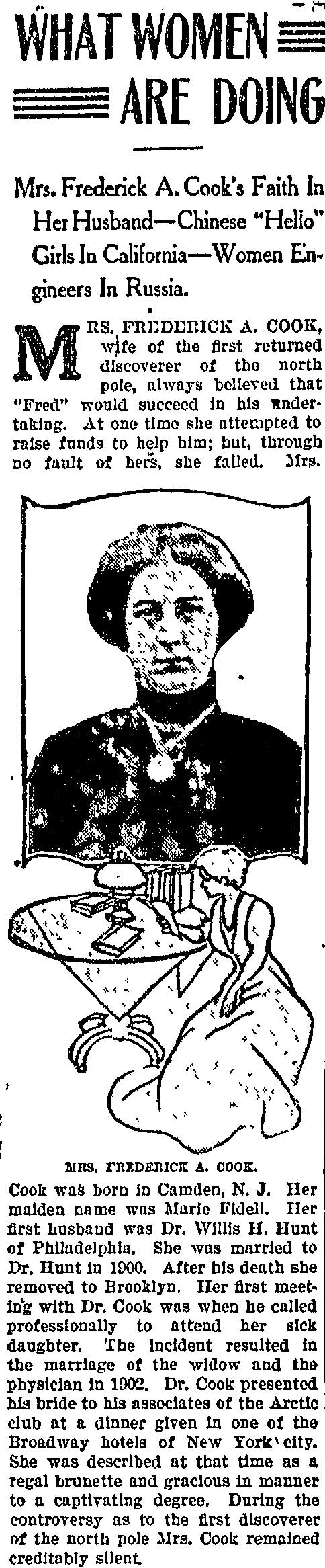 Worth Star Telegram September 9, 1909 Ruth Hunt and her
