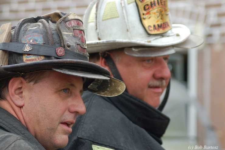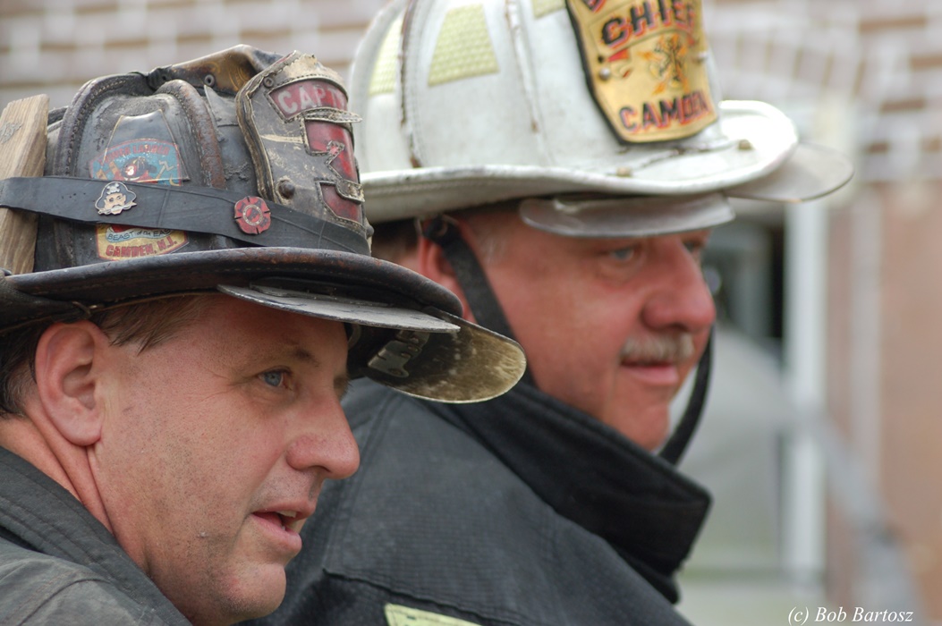 Two firefighters hurt, 3 homeless after blaze Two city firefighters were injured and three people left homeless early Wednesday when a two-alarm fire heavily damaged attached homes in the 1000 block of North 25th Street. Camden City Chief Fire Marshal Herb Leary said the fire erupted about 4:05 a.m. in a basement lighting fixture of a home at 1006 North 25th Street occupied by a couple. Their names were not immediately available. The fire spread through the home and into the home of an 82-year-old woman at 1008 North 25th Street. The woman, who was not immediately identified, was awakened by a smoke alarm in her home, Leary said. All three people fled their burning homes before firefighters arrived. The American Red Cross was helping them to relocate, Leary said. Firefighters fought the blaze until about, 5:45 a.m. before declaring it under control. Two city firefighters, Capt. Duane Goobic and Firefighter Jim Ryan, were injured battling the blaze. Both were taken to Cooper Hospital/University Medical Center in Camden. Goobic was treated for a cut on his lip and Ryan was treated for an ankle sprain. Both were released after treatment, Leary said. While city firefighters were fighting the blaze, they also were called at about 4:30 a.m. to battle a fire in a vacant home in the 500 block of Pfeiffer Street. Leary said someone had placed a 100-pound canister of propane gas in the home and set it ablaze. The tank burned but did not explode. The fire extensively damaged the home. |