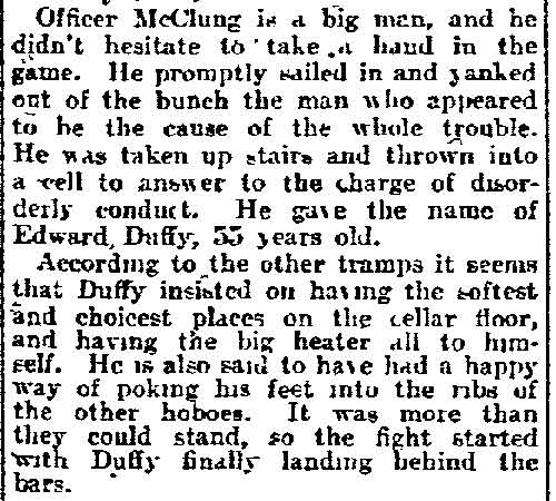 Harry Mines, not named above, is in the first row between H. Frank Petttit and Edward Hartman. In the fifth row, at the far right, "John Barnett" was a guess on the part of A. Lincoln James. Another person guessed George Johnson. Both were wrong and it is not known who that policeman is. |