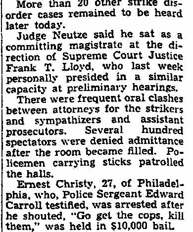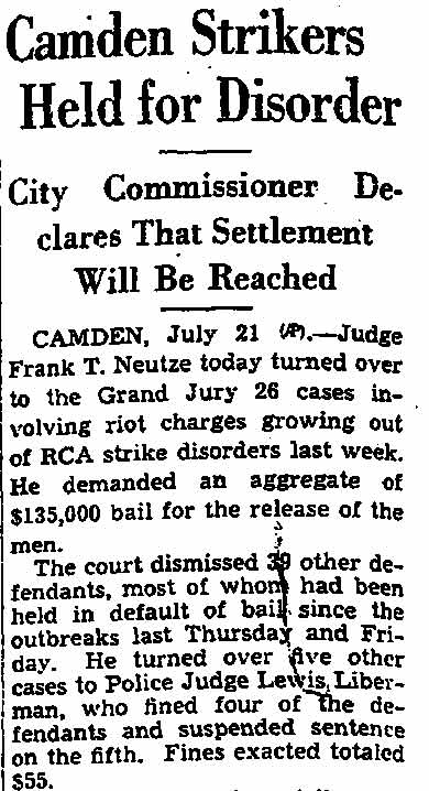Clatter of falling ash cans upset the nerves and aroused the indignation of Camden’s City Court today. As a result, one city hall janitor came in for denunciation of an Judge Bernard Bertman, while only their agility and fleetness of foot saved others from a similar dire fate. The court session had been in progress for some time this morning when a deafening clank and clatter of metal arose from below, penetrating the quiet courtroom and drowning out the testimony of some complainant who was relating his troubles. “What’s all that” inquired Judge Bertman. Someone mentioned something about the city hall janitors having to take the ashes out. “Tell them not to make so much noise” the court instructed Turnkey Fred Watson. Watson left the courtroom and returned, but the noise continued. “Did you tell them what I said?” Bertman demanded. “Yes” was Watson’s reply, “but they didn’t pay any attention.” “All right”, the court remarked, turning to Policeman Ed Carroll, “lock ‘em up for contempt of court.” Carroll left the courtroom, but the arrest was prevented by a “tip-off”. “Here comes a cop”, someone yelled from a window. The janitors didn’t know very much about contempt of court, but the threatened arrival of a cop was something they could understand. Jimmy Shissler took to his heels was last seen disappearing in a cloud of dust down Seventh Street. Ben Thomas dodged into City Hall and apparently found a hiding place. When Policeman Carroll arrived on the scene, only the luckless Ed Carter, acting City Hall custodian, remained. A moment later he was standing before Judge Bertman. Even in normal circumstances Carter stutters. Under these circumstances he was all but tongue-tied. “Where are the others?” Judge Bertman demanded. “I couldn’t find ‘em” said Carroll. Then the court turned to Carter. “Why didn’t you stop that noise when you were ordered to?” the Judge demanded. Car6ter considered. “I-I d-d-d-d-d-did” he exclaimed. “Well then, why was it that the noise continued?” the Judge asked. “I c-c-c-couldn’t s-s-stop the t-t-tin cans f-f-from f-f-falling d-d-own,”, was Carter’s answer. “Don’t let it happen again” the judge ordered. “Now get out of here” Carter got. |