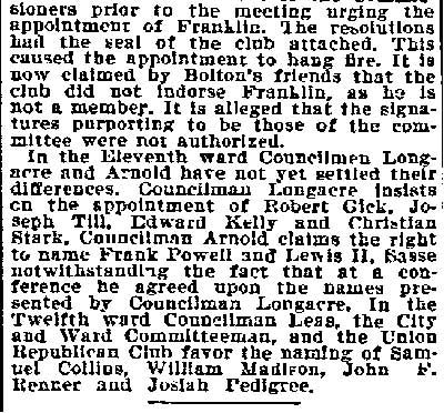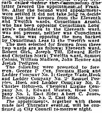W. Vanhart W. Scott Franklin - Robert Gick - Joseph Till - Edward Kelley - Christian Stark Frank Powell - Lewis H. Sasse - Samuel Collins - William Madison - John F. Renner Josiah Pedigree |