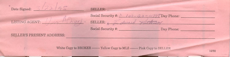 22, 1995 Edward L. Patterson lists his house at 52 North 33rd Street for Sale with Zinman Realtors |