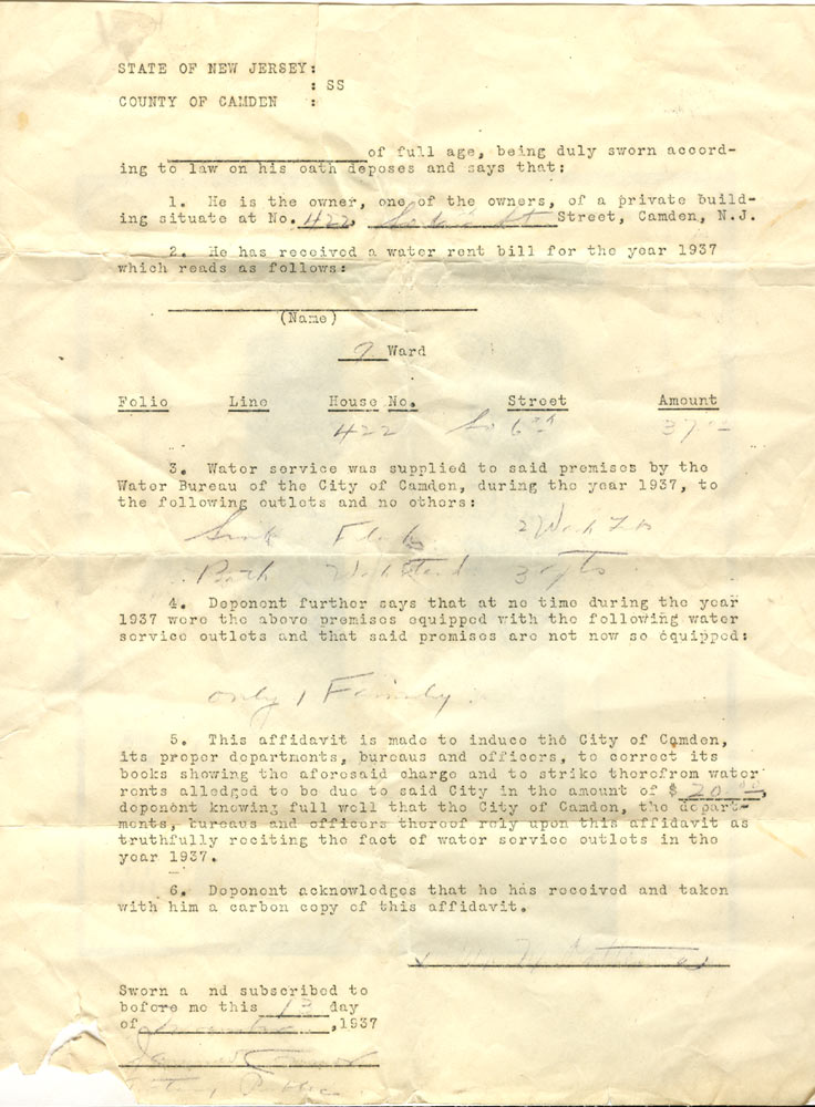 Photos probably taken in front of 422 South 6th Street, Camden NJ |