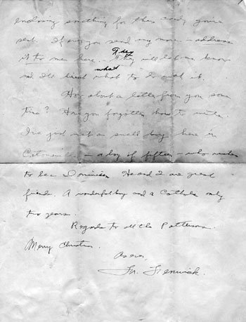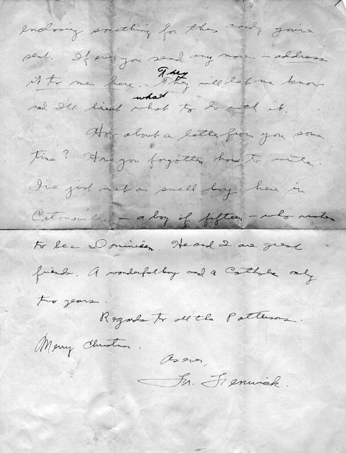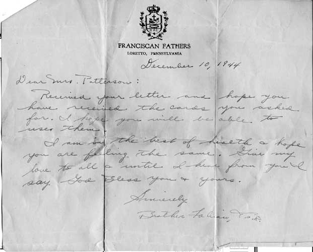 10, 1944 Letter from Brother Fabian to Mrs. Anna Mary Patterson |