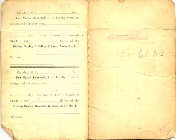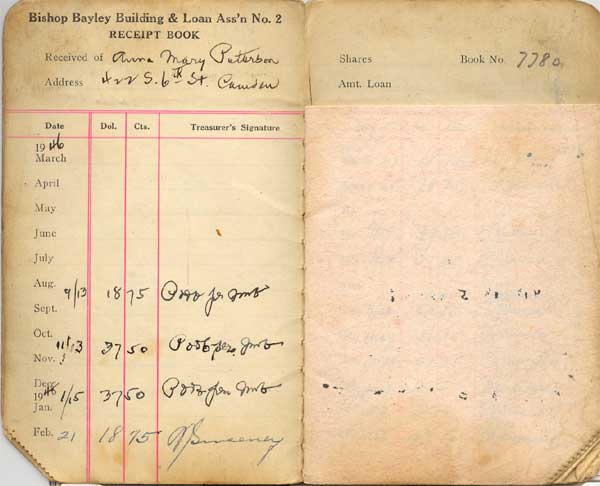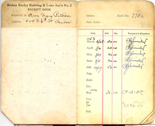 Bayley Building & Loan Association No. 2 Receipt Book Anna Mary Patterson August 1946