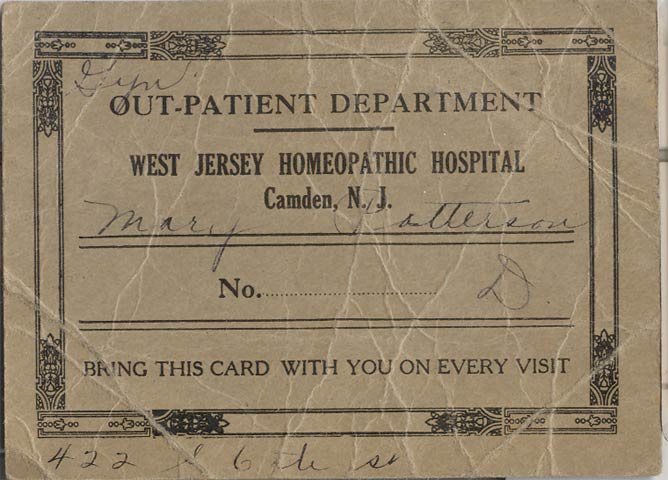 1944 West Jersey Homeopathic Hospital Outpatient Pass |