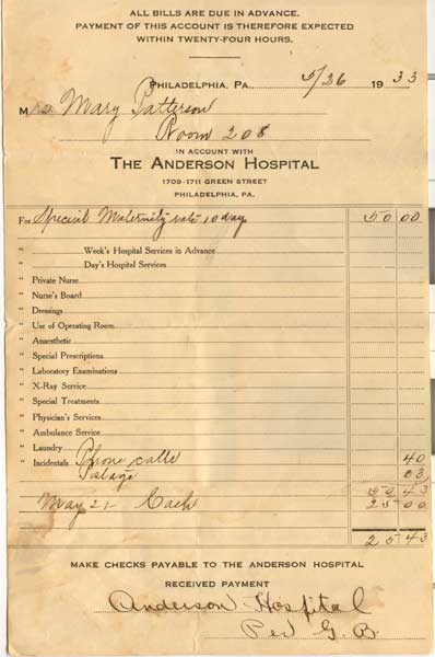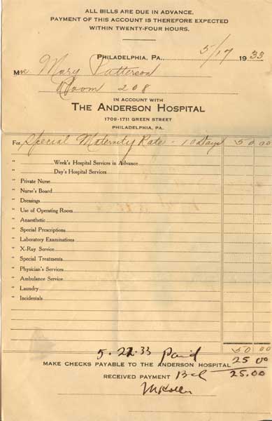 17, 1933 - "Mary" Patterson gives birth to a son, David J.