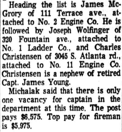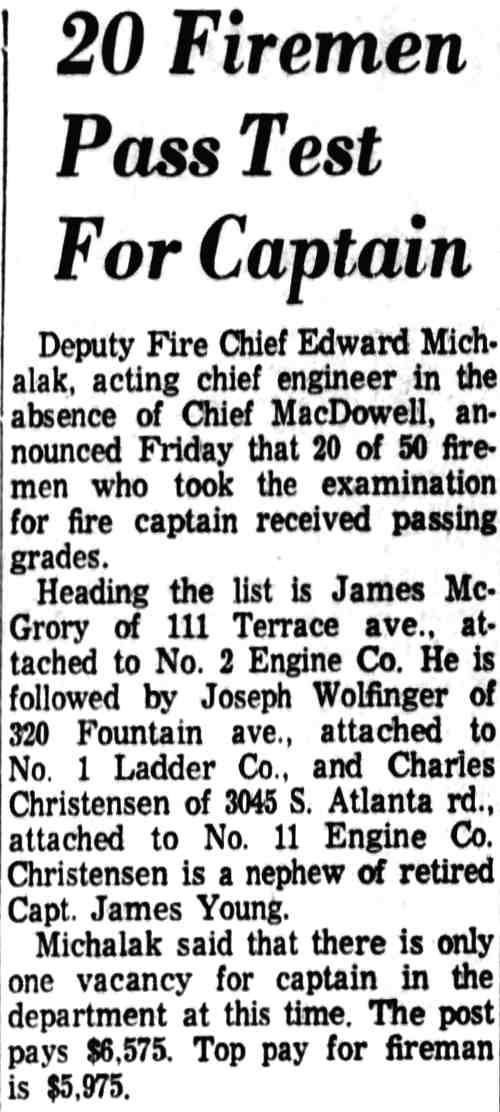 Street Edward V. Michalak George P. Baxter Thomas Carter Ratcliffe Randy Smith Robert Smith Emilene Green Edward Sharp Philip Bocelli James Snyder James Green Shirley Ratcliffe George Pugh Emma Lou Ratcliffe Patricia Smith William Roane Benjamin Walters William Kamman William Stibi Jr. John Dimaggio James T. McGrory Ladder Company 2 Rescue Company 1 Engine Company 3