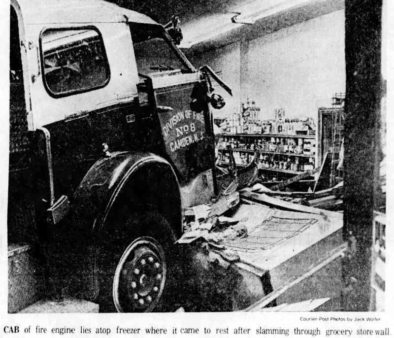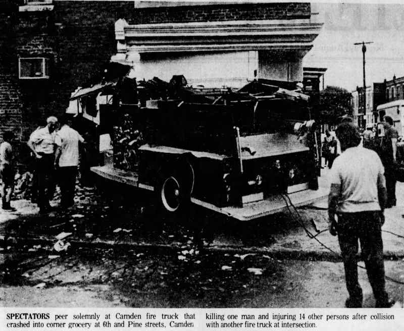 Council Checking Into Crash By RICH BERGEMAN The brakes on one Camden fire engine will be examined by a specialist to see whether brake failure was responsible for Saturday’s collision of two fire trucks in which one man was killed and l4 persons injured. However. Deputy Fire Chief Daniel Jiannetto. appearing before Camden City Council Thursday. said he felt the possibility of brake failure was remote because Engine No. 8 is safeguarded by a complex triple-brake system. Jiannetto said James Peterson, the driver for Engine Co. No. 8. reported he believed the brakes on his vehicle failed to function when he saw Engine Co. No. 1 emerge from a cross-street. The collision occurred at 6th and Pine Streets as both fire companies were responding to a house fire about two blocks north of the accident scene. The crash sent Engine No. 8 through the wall of Livecchi's Grocery at 601 Pine Street, killing Wilkins Tisdale, 65, a shopper emerging from the store at the time. Engine No. 8 was traveling north on 6th, which is a through street. while Engine No. 1 was headed east on Pine for 7th Street, where the driver planned to turn north to the fire scene. Both captains reported their vehicles were traveling at a relatively slow rate of speed, and that buildings at the corners of 6th and Pine obscured their view. There was also speculation that the drivers were unable to hear each other approach became of the none from their own sirens. So far, fire and police department investigators have not yet fixed blame on either driver, according to Public Safety Director David Kelly.
