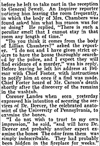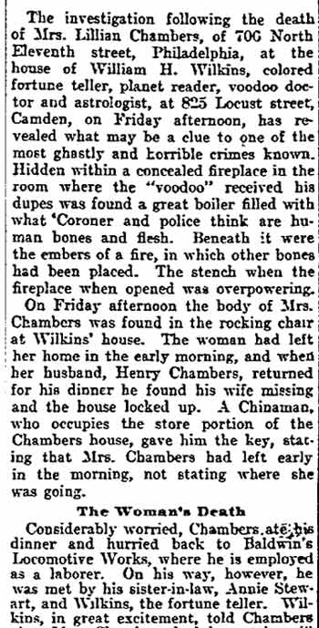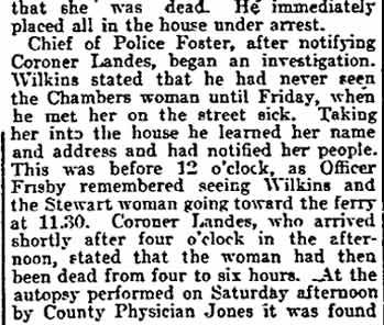 Hyde - Harry Frisby William Wilkins - Henry Chambers - Lillian Chambers Louisa Chambers - Annie Stewart - Coroner Edgar H. Landes County Physician william s. jones Assistant Prosecutor William H. Carson General William Joyce Sewell - 852 Locust Street |