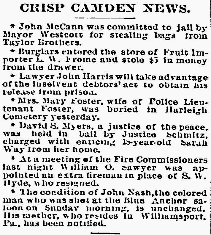 Here's Camden's Finest, With Whiskers, in 1898 |