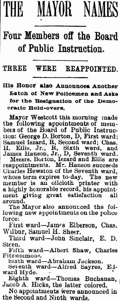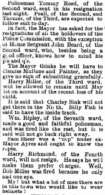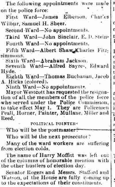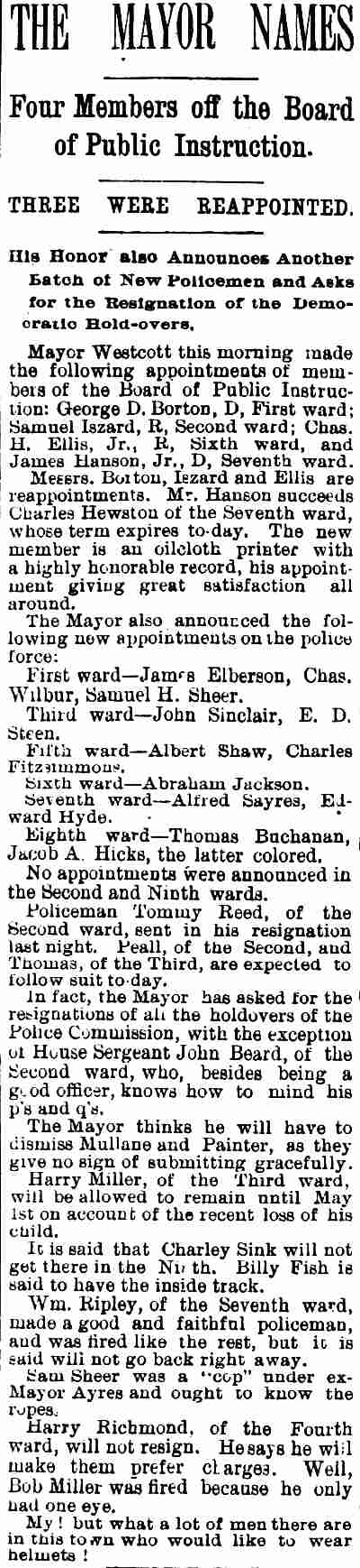 L. Westcott - George D. Borton Thomas Reed - Joseph Peall - George Horner John Beard - Thomas Mullane - John Painter Police