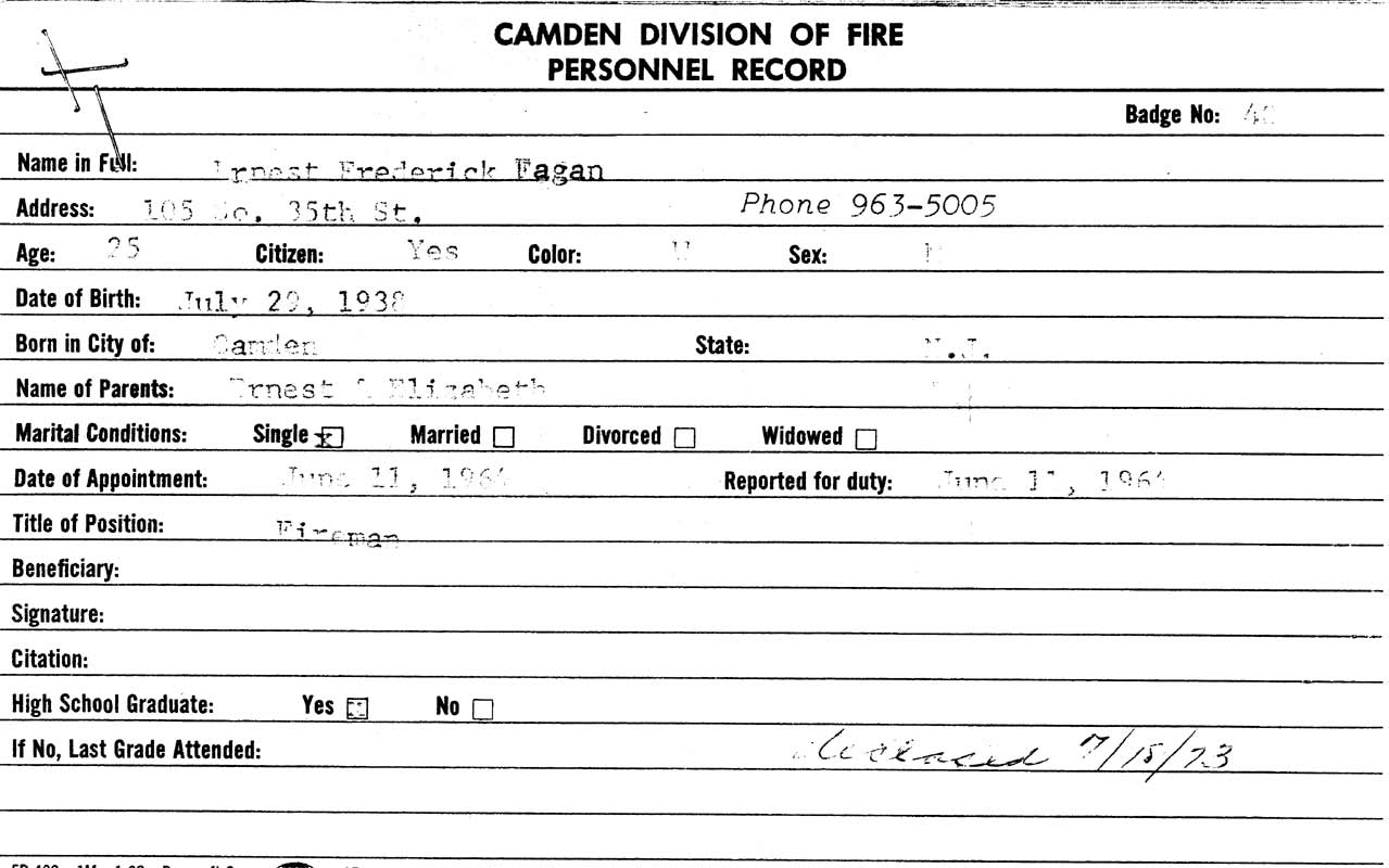 Camden Fire Fighters Ernie Fagan and leon johnson - March 7, 1971 |