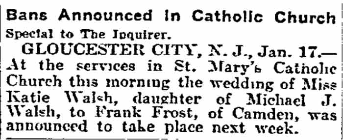 Frank Frost - Michael J. Walsh - St. Mary's Catholic Church |