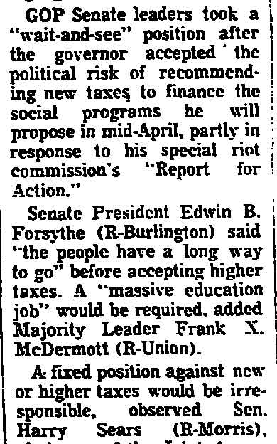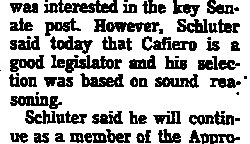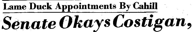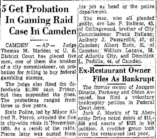 Pierce Is Ousted As Safety Head By LEE STEW ART Amid cheers and boos from spectators, Mayor Pierce was switched from director of public safety to public affairs director at a commission meeting Thursday night. Pierce lost control of the police and fire departments by a 4·1 vote. The motion to divest the mayor of the public safety department was made by Commissioner Abbott and seconded by Commissioner garrity. Pierce cast the lone dissenting vote against the change. At 8:25 p. m. after the commission had gone through the routine business, Commissioner Shepp handed a sheaf of papers to City Clerk John T. Odorisio. Odorisio started shuffling the papers when Shepp told him to read them in the order he gave them to him. Cheers, Boos The resolutions read by the clerk first changed the duties of the various commissioners. The more than 500 spectators cheered then booed as Pierce cast the only dissenting vote. Then Odorisio read the resolution which then transferred four of the commissioners. Garrity, who was public affairs director, was named top succeed Pierce as public safety director in charge of the police and fire departments. The public affairs directorship was a sharply curtailed one as contrasted to what Garrity had. Assigned to the department of public affairs was the director's office, the revaluation program, visiting nurses, public assistance, the Camden County Historical Society, charitable institutions, the Parking Authority, Civil Defense and celebration of public events, anniversaries and holidays. Garrity retained the health department, sanitary control and cemeteries. Taken away from the department of public affairs and given to other commissioners was the plumbing inspector, municipal court, Municipal Hospital, Convention Hall, city clerk, elections, city property, bureau of tax title perfection and redemption, municipal welfare and Radio Station WCAM. Commissioner Abbott was designated director of the department of public works; Italiano was named director of public parks and property, while Shepp retained the department of revenue and finance. Pierce again cast the lone dissenting vote. Declines to Make Statement At the close of the meeting a Courier-Post reporter asked Commissioner Italiano why he had I voted to strip Mayor Pierce. "I'd rather not make any statement at this time," Italiano replied. "I may make a statement later." The reporter pointed out that whatever the commissioner had to say should be in today's newspaper. Italiano repeated: "I'd rather not have anything to say right now. I may have a statement in a day or two." Commissioner Garrity left the meeting room while the reporter was talking to Italiano. Contacted Again Again, this morning, a reporter contacted Italiano and asked him if he would explain his vote. He replied: "No comment." Commissioner Garrity, reached at his home today, also was asked if he had any statement to make concerning his vote to strip Mayor Pierce. "I haven't prepared any state-ment as yet," Garrity said. "I will have one later. I am figuring it out in my mind." Solicitor Quits Following the changes, Michael J. Piarulli, city solicitor who would have reported to Shepp under the realignment, resigned. He previously was under Pierce's office. "I cannot, in good conscience, continue to work as city solicitor in a department headed by Commissioner Shepp," Piarulli said. "I have nothing against Shepp. In due fairness, I do not feel I could do justice to the job." The meeting was thrown open to the public and many persons present spoke against the action of the commissioners in taking the department of public safety from Pierce. |