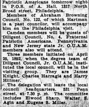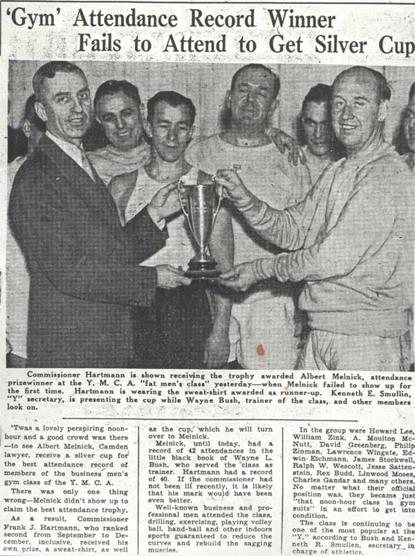 BATHING ALLOWED HERE … Hartmann declared it was not necessarily a mark of Simon's extreme liberality, so much as a "satirization of police." His announcement came as an echo of the arrest of 14 nude bathers, all boys and young men, by police on orders of Mayor Roy R. Stewart last Thursday after Hartmann had complained. All 14 were released the following day by Judge Garfield Pancoast, who scored those causing the arrests. "It Is Mr. Simon's attitude," Hartmann explained, "that if the city is going to allow nude bathing it may as well be legalized as much as possible. "We complained to the Mayor, who is director of public safety, about vandalism which has resulted in destruction of property valued at more than $500,000," Hartmann said. "Yet, there has not been one conviction for vandalism, and nude bathing is considered as more, important. The arrests of those boys were made more to embarrass me than in the interest of morals. "If police are sincere about any complaints I make, why hasn’t there been one arrest for vandalism? We have a wisecracking judge who compliments offenders, so I wonder if he will be so ready to sanction nude bathing now that Mr. Simon believes in finding some legalization for it?" Hartmann also protested against a rumored proposal to close the fire station [Engine Company 4- pmc] on Vine Street between Third and Fourth Streets. "That would be a very dangerous move for this section of the city," he said, "for if a train was shifting on the North Main Street tracks at the time of a fire, we would be left without protection because apparatus would be unable to get through from any other section of the city." George Shaw, vice president. also I protested against the removal, declaring that "the fire underwriters are not in favor of it." Both men also alleged that North Camden was without sufficient police protection. Officers were re-elected for the ensuing six months of the year. They are Harry F. Walton, president; Shaw, vice president; Mrs. Ida Pfeil, treasurer; hartmann, recording secretary, and Miss Elsie Stein, financial secretary. |