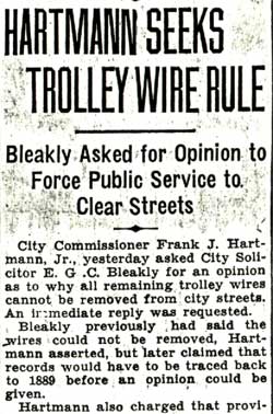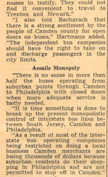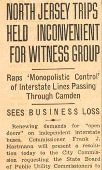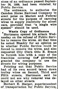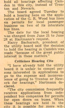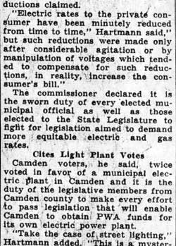 with police, cited various instances of Frank J. Hartmann, Jr., secretary, announced the Congress of Civic Associations was preparing a resolution to be sent to the public utility commission censuring that board for its action in allegedly "boosting electric voltages, keeping bus doors closed, approving underground high speed bridge rails in Camden, approving railroad consolidation and for "calling Public Service electric rates fair and just." Bridge Loan Rapped
