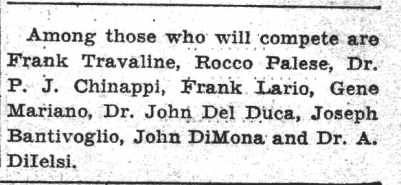 MRS. TRAVALINE HEADS LODGE FOR 6TH TERM Mrs. Antonetta Travaline has been elected to serve her sixth term as president of Lodge St. Theresa, Order Giovani Italia. She Is the mother of former Assemblyman Frank M. Travaline. Election and Installation of officers was held at the lodge hall, 415 Walnut street. Frank Coruzzi, president of the men's lodge, was in charge of the ceremonies. Other officers are Adelaide Santoniello, vice president; Marie Maroccia, orator; Rose DiGuiseppe, corresponding secretary; Julia Falcone, financial secretary; Kathryn Ervoline, treasurer; Teresa Coruzzi, Rose Di Salvio, Laura Di Note, Emanuela Darpino, Maria Martino, Carmela Rosato, trustees; Teresa Di Pasquale, Marie Pizzutillo, sanitary committee; Marie Darpine, sentinella. Madeline Salvatore delivered an address and the organization presented a gift to Mrs. Travaline. ******************* |