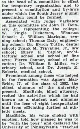 TO BE GUEST Of REALTY BOARD Edward J. Borden will be guest of honor tonight of the Camden County Real Estate Board at a banquet in honor of his election as president of the New Jersey Real Estate Commission. The banquet, to be held in the Camden Club, 315 Cooper street, will be attended by lawyers, real estate men and public officials from all sections of the state. The Real Estate Board, of which borden was thrice president, is giving the dinner. Among the guests who will attend are former U. S. Senator David Baird, Jr., Assemblyman Frank M. Travaline, Jr., Mayor Roy R. Stewart and other members of the Camden City Commission; Dr. Leon N. Neulen, city superintendent of schools, and Police Judge Garfield Pancoast. The speakers include William S. Abbott, president of the Camden County Real Estate Board; Leon E. Todd , former president; Vincent P. Bradley, of Trenton, retiring president of the New Jersey Real Estate Commission; Carleton E. Adams, of Atlantic City, vice president of the New Jersey Association of Real Estate Boards; Samuel P. Orlando, former assistant prosecutor of Camden county, and C. Armel Nutter, general chairman of the banquet committee. On the banquet program appears the gilded outline of a bee, typifying borden 's activities in the interests of real estate advancement in Camden county. Wayland P. Cramer is chairman of the program, committee. Chairmen of other committees follow: William A. Eppright, attendance; T. J., McCormick, entertainment; Carl R. Evered , door prizes, and Todd , speakers and guests. George B. Robeson, former president of the Real Estate Board, Is toastmaster of the banquet, which will begin at 7:30 p. m. |