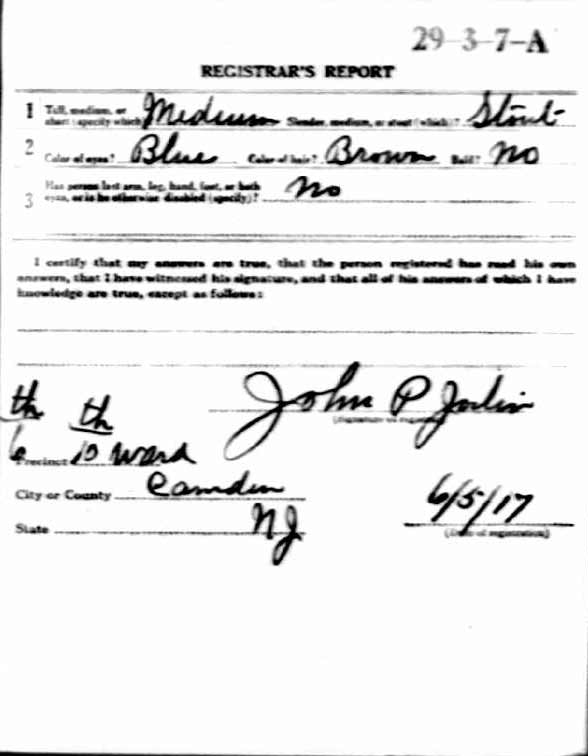 Frank Oberman married Emily McQueen not long after registering for the draft. They were living at 947 Elm Street with Emily's son, Herbert and Walter when the 1919 Camden City Directory was compiled.