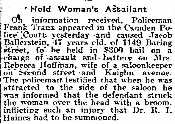 TELLS OF LEAP TO ESCAPE CAPTOR After little 10-year-old Mamie Zimmie, 1181 Morton Street, finished telling a story of how she had been lured into a house, and had escaped by leaping to the ground from a porch roof. Police J udge Bernard Bertman this morning held Samuel Osler, 18 years old, 1450 Mount Ephraim Avenue in $2500 bail for the Grand Jury. In default young Osler was committed to the county jail. Facing a courtroom, crowded with spectators, and showing no sign of fear or excitement, Mamie, while on the witness stand, turned toward the youth, six years her senior, and declared, "That’s the boy who tried to hurt me.” Detective Frank Truax testified that he arrested Osler yesterday afternoon in his home at the Mt. Ephraim Avenue address, after the Zimmie girl had accused him. On the stand and the object of the stare of those who packed the courtroom, Mamie dramatically recited the events of yesterday afternoon which led to her leap from the porch roof and her removal to the West Jersey Hospital, cut, bruised and lame. The girl's leap had been witnessed by Frank Clark, of 1006 South Ninth Street who picked her up and took her to the hospital. She was treated for cuts and bruises and allowed to go home. Her father, William Zimmie, testified that his daughter had complained of pains in her back, all night. On the stand in his own defense, Osler said that Mamie had followed him into the house and up the stairs. “When I went into the bathroom to get some money, she jumped out of the window, I did not know her,” he declared . |