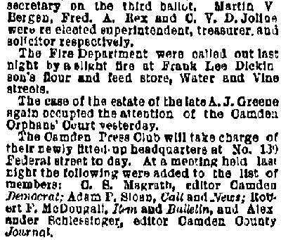 Philadelphia Inquirer April 2, 1889 Camden Horse Car Company |