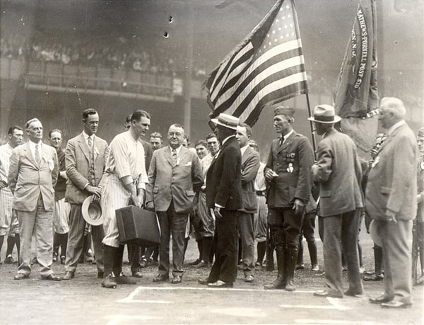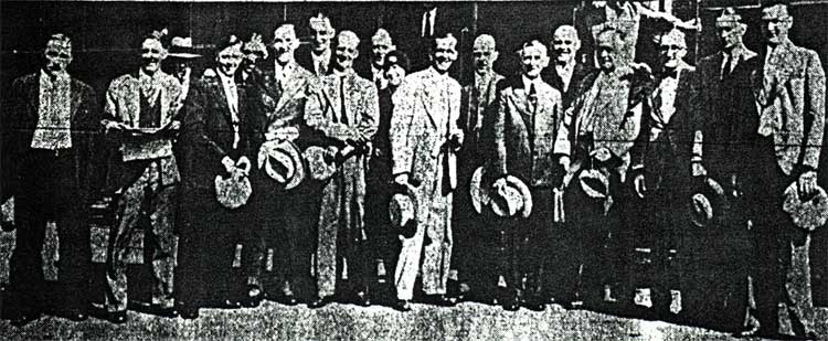 From Left: unknown Yankee, Philip G. Wilson, Herb Pennock, Elmer Graw, Fred Heimach, Jefferson J. Flanagan, Congressman Charles A. Wolverton (speaking to Heimach, in straw hat) Loyal D. Odhner (in uniform), Francis B. Wallen (white hat), Lewis K. Marr |