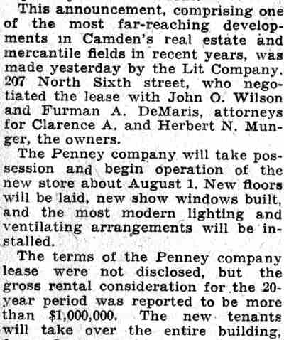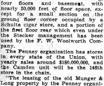 Ellsworth Long - Stecker & Sons - J.C. Penney Company Lit Company - North 6th Street - F.W. Woolworth Company John O. Wilson - Furman A. DeMaris - Herbert N. Munger - Clarence A. Munger |