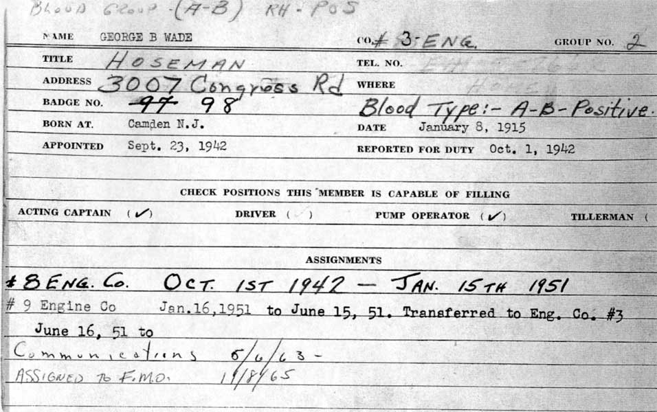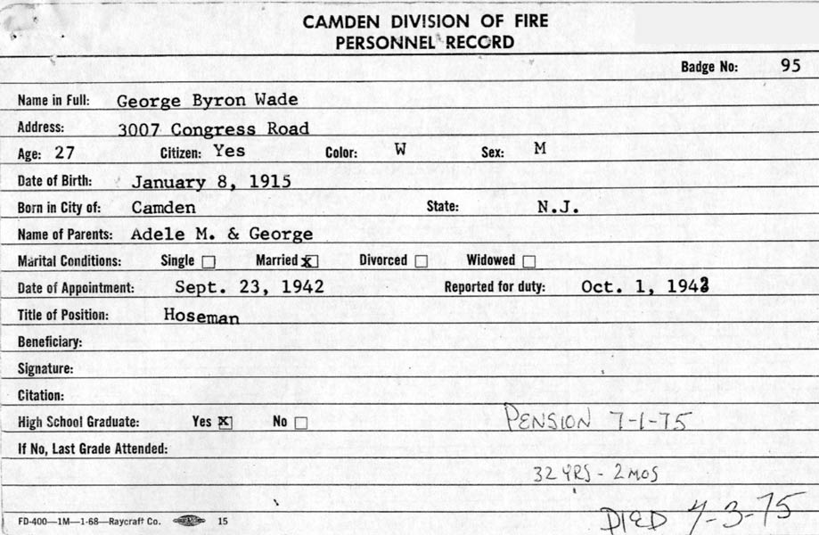 appointed to the Camden Fire Department on September 23, 1942.