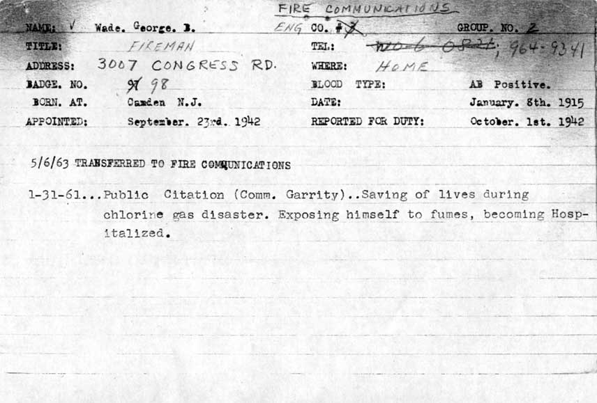B. Wade, a legendary member of the Camden Fire Department