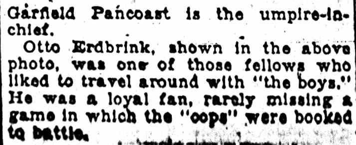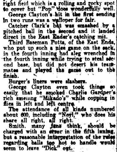 Bill Hess - Bill Lafferty Allie Glendenning - George Glendenning - Albert "Dutch" Barr - Wid Conroy - Morris Steelman Charley Smith - Walter "Weep" Stanton - Charles Garrison - Slim Avis - Bert Dopson Buck Weaver - Don Sagel - Bill Robertson - Howard Clayton |