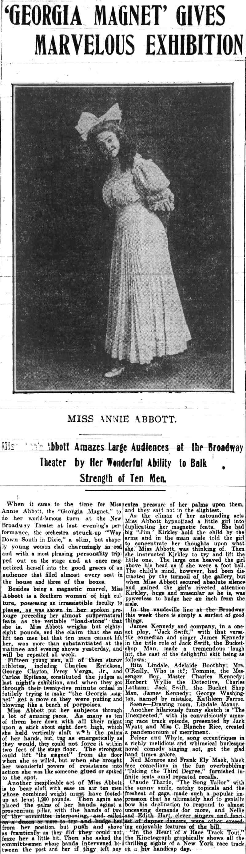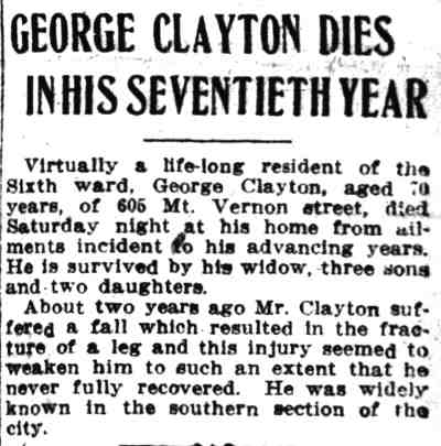 Post-Telegram * October 26, 1909 George Clayton's night at the New Broadway Theater, Broadway & Sycamore Street |