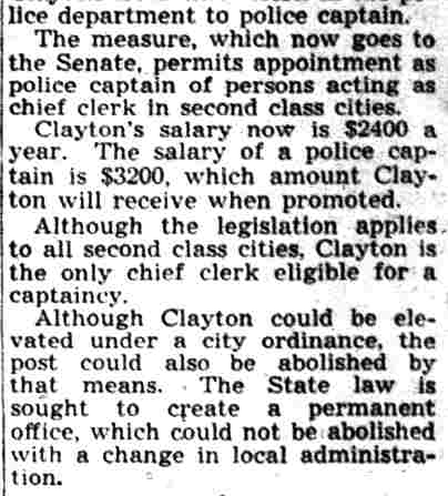 CHOSEN HEAD OF POLICEMEN, FIREMEN Lauded by the members for his splendid work in behalf of the club, Herbert Bott , a patrolman attached to the Third Police District, last night was re-elected president of the Camden Police and Firemen's Association. The praise was heaped upon the patrolman following announcement that he had received 107 of 110 votes cast in yesterday's balloting. He was unopposed for reelection. In a three-cornered fight, William P. Spencer , a fireman, was elected vice president of the association. He received 73 votes. His opponents were charles edwards, given 12 votes, and Albert Dukes, 18 votes. Both are firemen. Others unopposed for office were: William Thorn , financial secretary; walter vecander , assistant financial secretary; Warren Rich , recording secretary, and Winfield Leviseur, assistant recording secretary. The last two are firemen while the first two are policemen. Lieutenant george ward , Patrolman william marter, and firemen William Taylor , william getner, James Young and Lawrence Newton were elected to the board of trustees. Sergeants-at-arms named were Stanley Wirtz and george clayton, police, and William Judge and john mulligan , firemen. All had opposition. After the ballots had been counted William H. Iszard, former assemblyman, appeared on behalf of the Elks Crippled Kiddies Committee, and asked police to support the wrestling show to be staged by that group February 13.. |