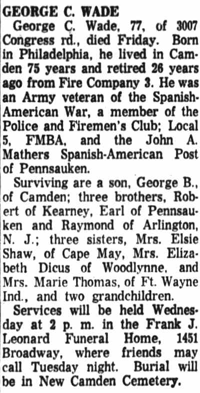 Camden Fire Department on September 23, 1942. George C. Wade had been