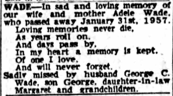 Wade married Adelaide M. "Addie" Powell. A