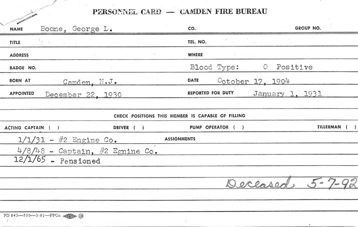 CAMDEN FIRE DEPARTMENT UNIFORMED PERSONNEL INDEX