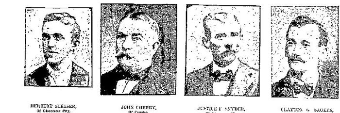 George D. Borton Rev. Dr. Clarence A. Adams - Trinity Baptist Church - Rev. Dr. Kittredge Wheeler Professor James C. Warhurst - Gideon H. Burt - Owen R. Jones -J. Oscar Nicholas - M.D. Dickinson Harry M. Andeson - Joseph R. Feenier - Ernest H. Longstreth - Hamilton Markley - Howland Croft John S. Mathis - Rev. Dr. George Gates - Charles F. Reese - James McCormick Charles K. McPherson - James Baird - William F. Claus - Harry B. Paul - George S. West Frank S. Jones - Christopher J. Mines Jr. |