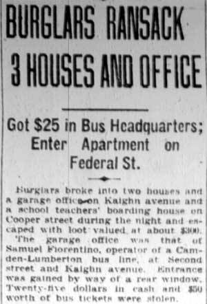 Crawford Smith - Carman Street - Charles Simonin - Fairview Street - John Studinger - Federal Street Samuel Ford - John Geronio - Cooper Street - James Davis - Mt. Vernon Street - Oscar Conway Mitchell Street - Mary Angelo - Pine Street - Thomas Kirk - Carpenter Street - Samuel Karon Mt. Ephraim Avenue - Walter Hart - Thurman Street - Frank Kulczynski - Orchard Street Clarence Arthur - Clifford Del Rossi - Benjamin Simon - Leon Branch - Walter Smith - Howard M. Smith Michael Tenerelli aka Mickey Blair - Anna Smallwood - Fred Klosterman - Joseph Klosterman Lillian Vincent - Frank Tyson - Edmund Powell - William Kinsler - John Feitz - Walter Taylor - Joseph Rea Harry Smith - John Lockwood - Edward Troutman - Thomas Moreland |
