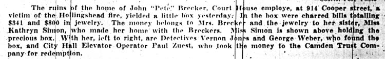 Camden Courier-Post February 24, 1928 George Weber Thompson's Hall