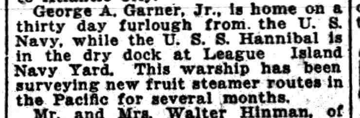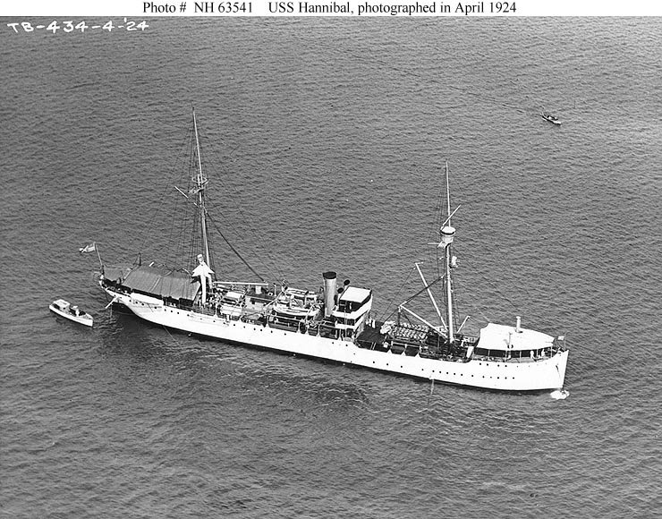 SOMEONE got the name of the ship wrong. There was never a U.S.S. Cannibal. The ship that George Garner served on was the USS Hannibal AG-1 |