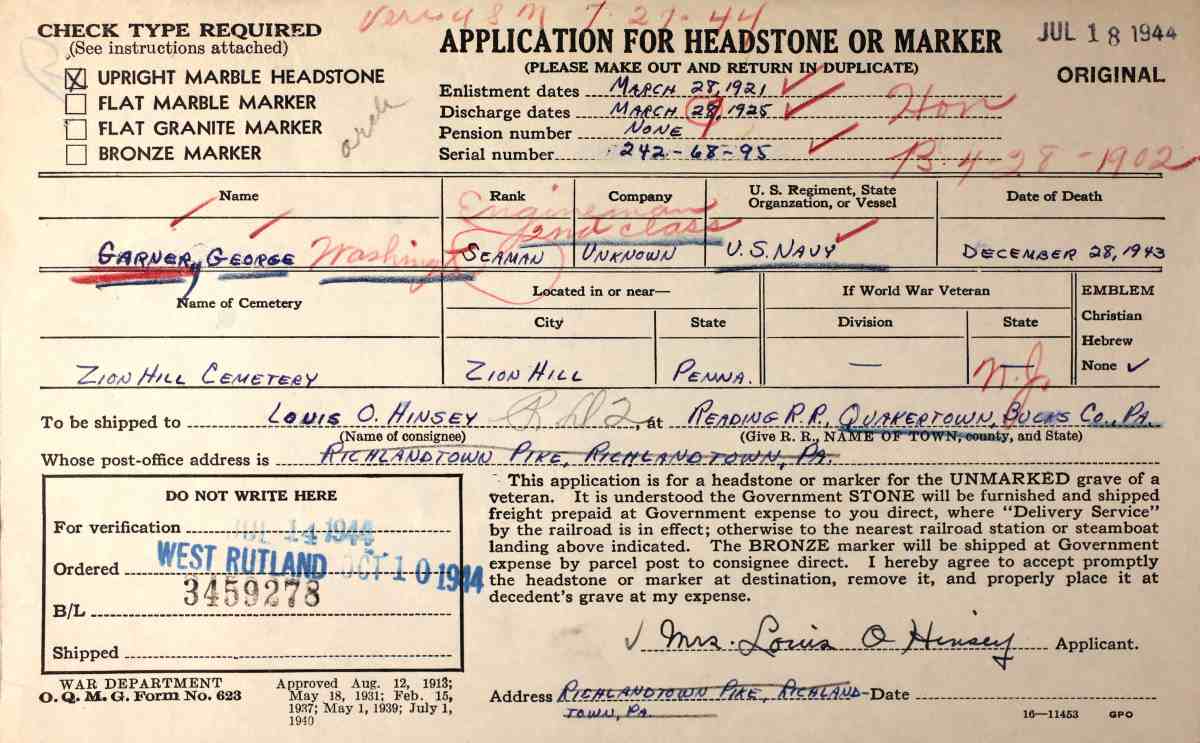 U.S. Department of War - Application for Headstone or Marker |