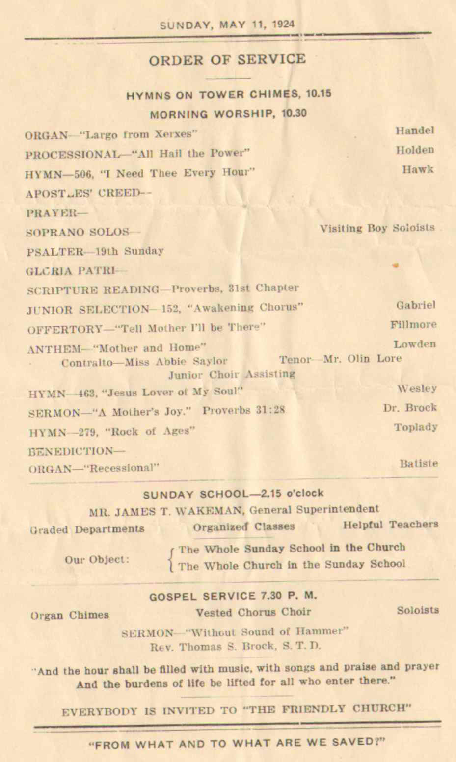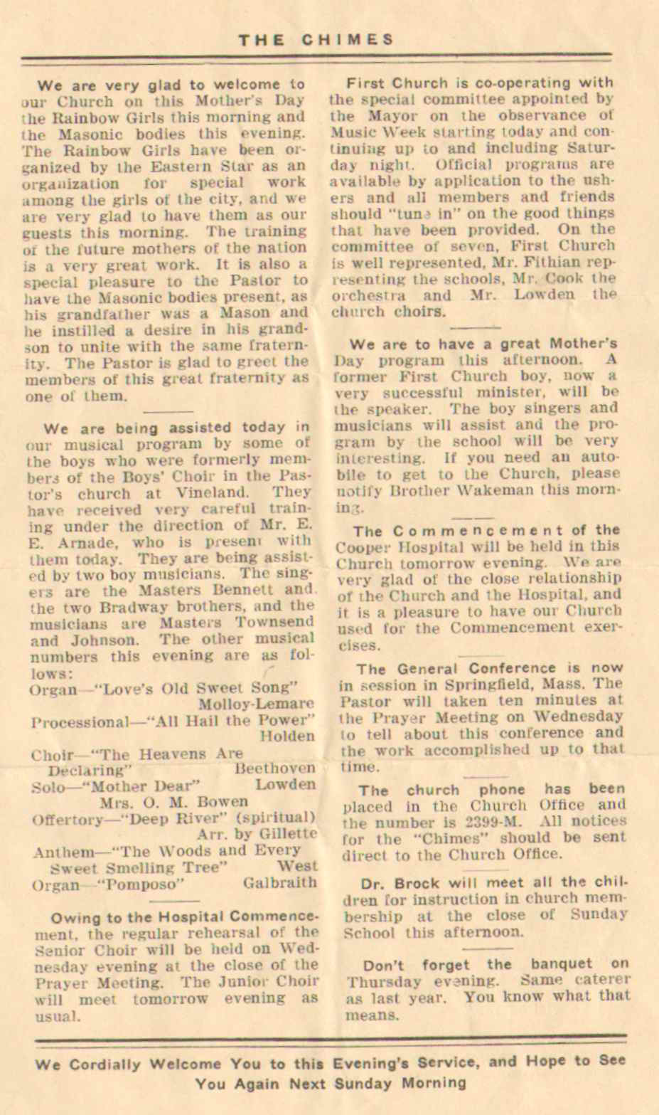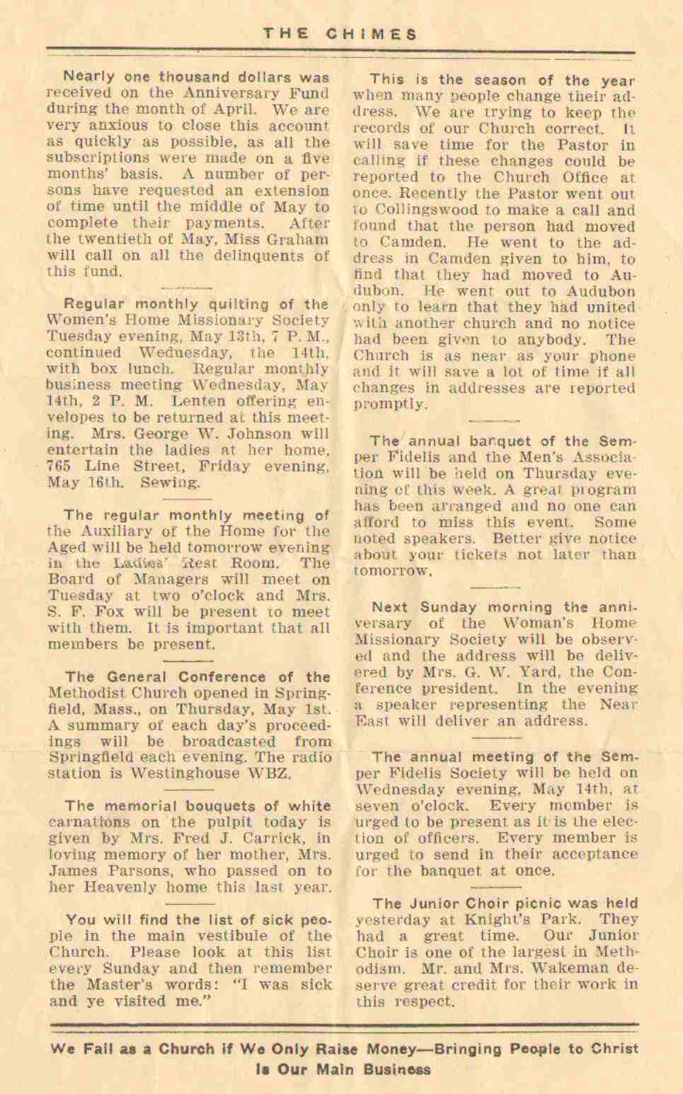The Chimes - first methodist episcopal church - May 11, 1924 |