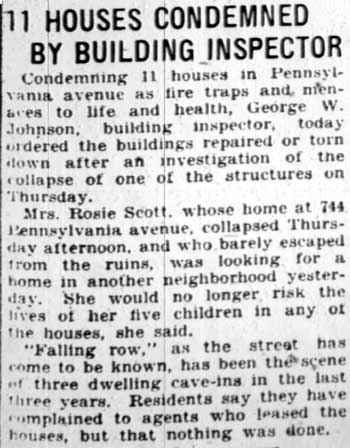 MANSION ORDERED RAZED BY CITY OFFICIAL Termed a ‘rendezvous of thieves, a haven for spooners and a general nightmare, the deserted and broken- down mansion at Third and state street s, was ordered torn down by Commissioner David S. Rhone, director of public safety. ‘It’s been a it public nuisance for several years and if the owners don’t raze it after they are so notified, the city will,” Commissioner Rhone said. Residents of the neighborhood declared yesterday that the old mansion has been a den for thieves, and that complaints to the city have gone unheeded. They said three robberies in one block in one week occurred this month because of it. The thieves, they explain watched the movements of the families from the deserted house, and robbed the dwellings after they had left for a few hours at night. Once Palatial Home The ramshackle building is at the northeast corner of Third and State Street s, opposite the James M. Cassady School. I t was once the palatial residence of the late augustus reeve , brick manufacturer, but has been in a state of decay for about five years. A “For Rent” sign has been on the property for a long period. Theater posters cover part of the exterior, its staircase has been torn away, practically all windows have been smashed by schoolboys and other marauders have removed doors, front steps and fence, and have ripped plaster from the walls. Robberies attributed in the neighborhood to thieves, who used the dilapidated property as a “den”’ were those at 313 State Street , next door, on January 7, 327 State Street , January 13, and 302 State Street , January 21. Police made no report of the facts, explaining to the victims that any release of information would interfere with the arrest of “a young man under suspicion in your own neighborhood.” Orders Not Revealed Commissioner rhone indicated he had given orders to George Johnson, building inspector, and Bernard Gallagher, fire marshal, relative to the dilapidated property. Commissioner rhone declined to explain what orders he had given the building inspector and the fire marshal relative to the old property. johnson had said earlier in the day that he had received no orders from Commissioner rhone . Later johnson said he “did not know what the orders are.” Questioned further and told that rhone had said that he had given him orders johnson said they pertained to “just see what the condition of the place was”. “All the windows are out and the doors are off,” he said, reporting on an inspection he asserted he conducted. “If there is a health menace there, that comes under the health Department, not the building department.” Asked what he would do about the place which was declared unsafe by the residents of the neighborhood, he said he did not know until he received “further orders” from Commissioner Rhone. Gallagher, the fire marshal, could not be reached this morning. |